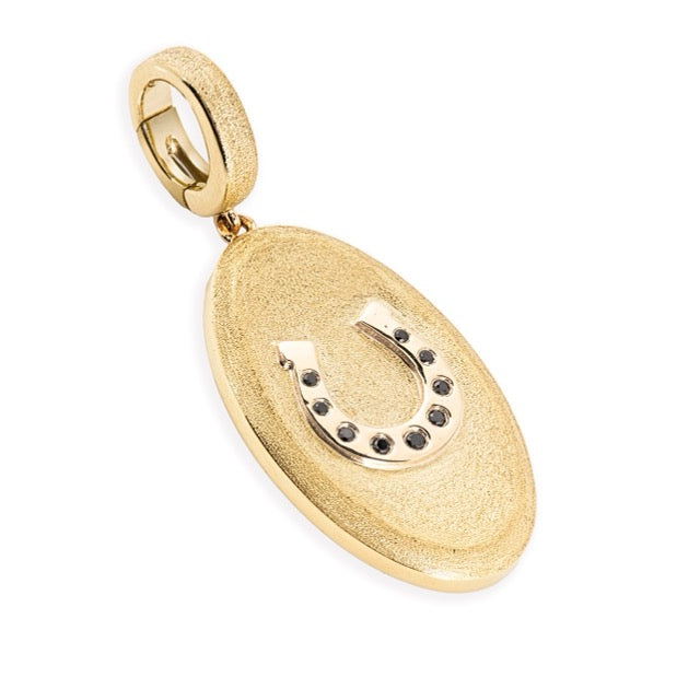 3D Gold Horseshoe set with 0.05 carats of Black Diamonds